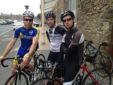 I was with Ian Jones and Dave Kirton standing in a gale along a busy section of the A66 dodging HGV’s as we tried to make our way across the central reservation to the south west of Barnard Castle. ‘We’ll have to make sure we get this right on the day’ said Dave as we made a run for it over the barriers to the east bound carriageway. Fortunately we did! The wind was light too and the Big One, the 100, went remarkably smoothly as 25 riders made their way successfully round the course, and in one big group too. The two key climbs of the Stang and the newly resurfaced (in preparation for the 2014 Tour de France) Grinton climbs were successfully negotiated with regroupings at the summit of the first and in Leyburn after the second.