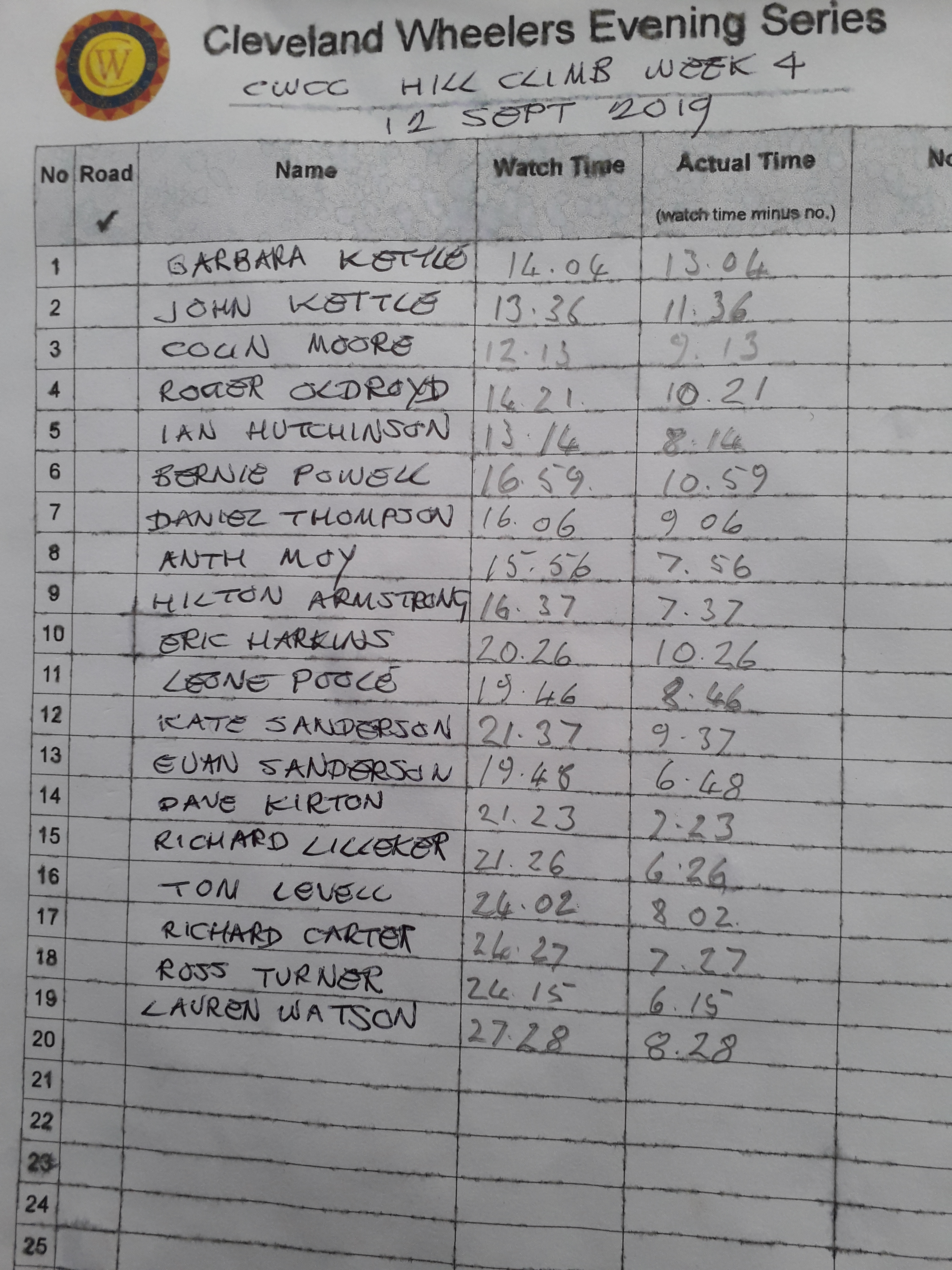 That’s the last of this year’s series, don’t forget it’s the CWCC Open Hill Climb on 22 September.
