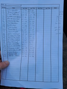 Here’s the timekeeper’s sheet for the first round of this year’s series.