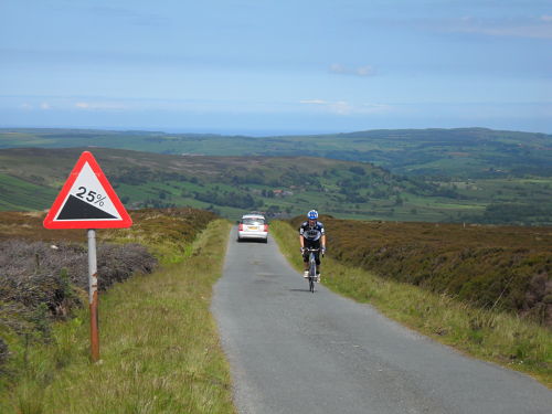 Paul – 9. I was struggling to articulate why this climb was so hard, fumbling as I was to blame the road surface, the undulations etc. when Dave simply said ‘what was so hard about that climb was its steepness and its length’ nuff said. Not quite as hard as the Chimney but close, in terms of pain I would say it’s the equal of Honister Pass from Buttermere in the Lakes and a bit harder than Park Rash in the Dales, if that’s of any help. It’s also harder than Blakey and Boltby Banks, which will be up next on the site.